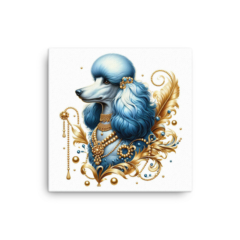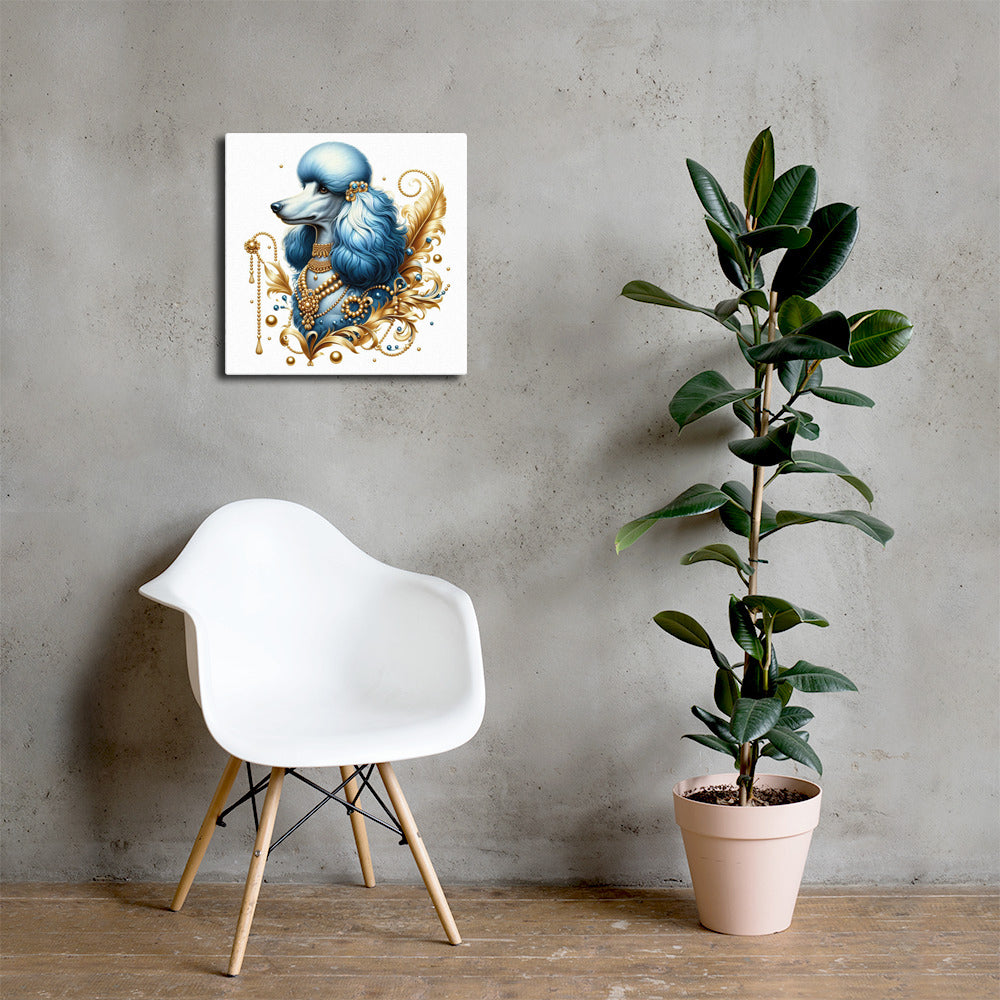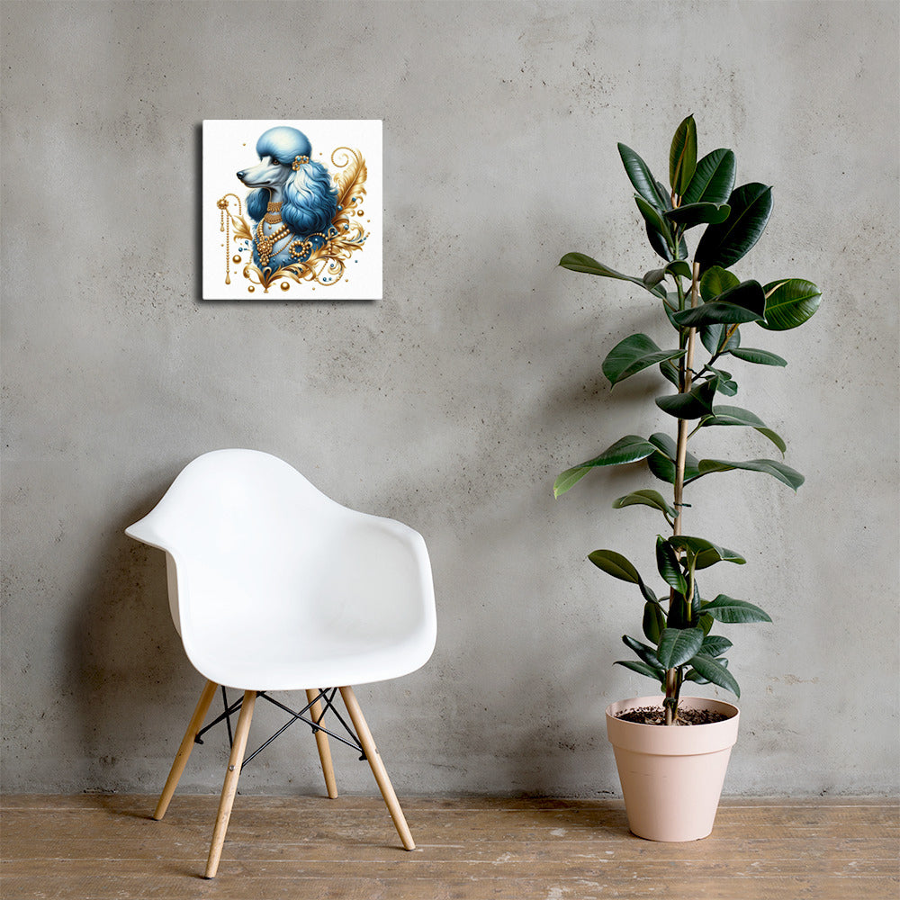 Using AI we were able to create this flowing and vibrant image to provide you with a one-of-a-kind artwork of a Poodle in blue and gold printed on canvas. Sigma Gamma Rho Sorority, Inc. members would absolutely love this hung in the office.