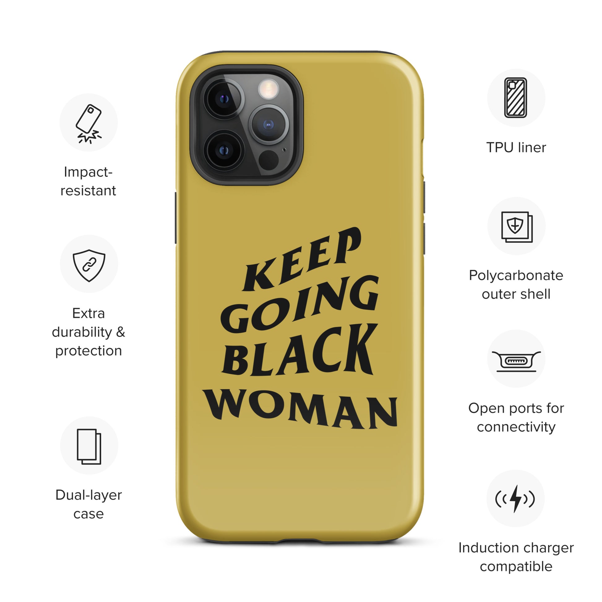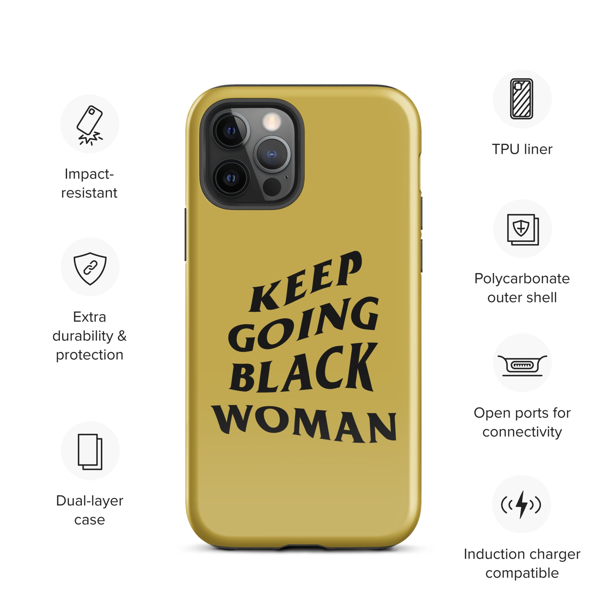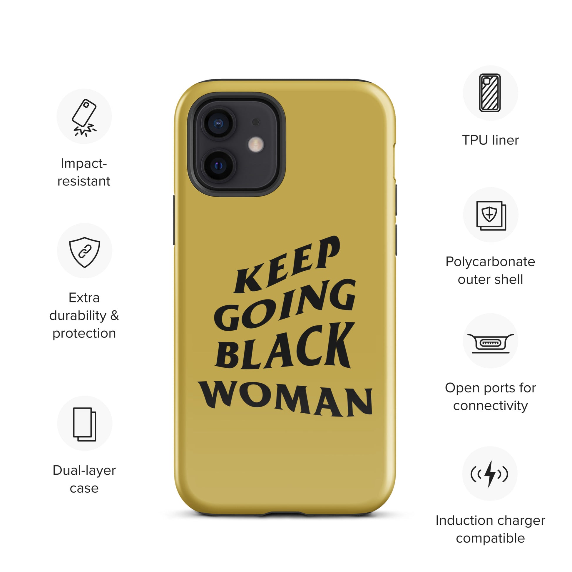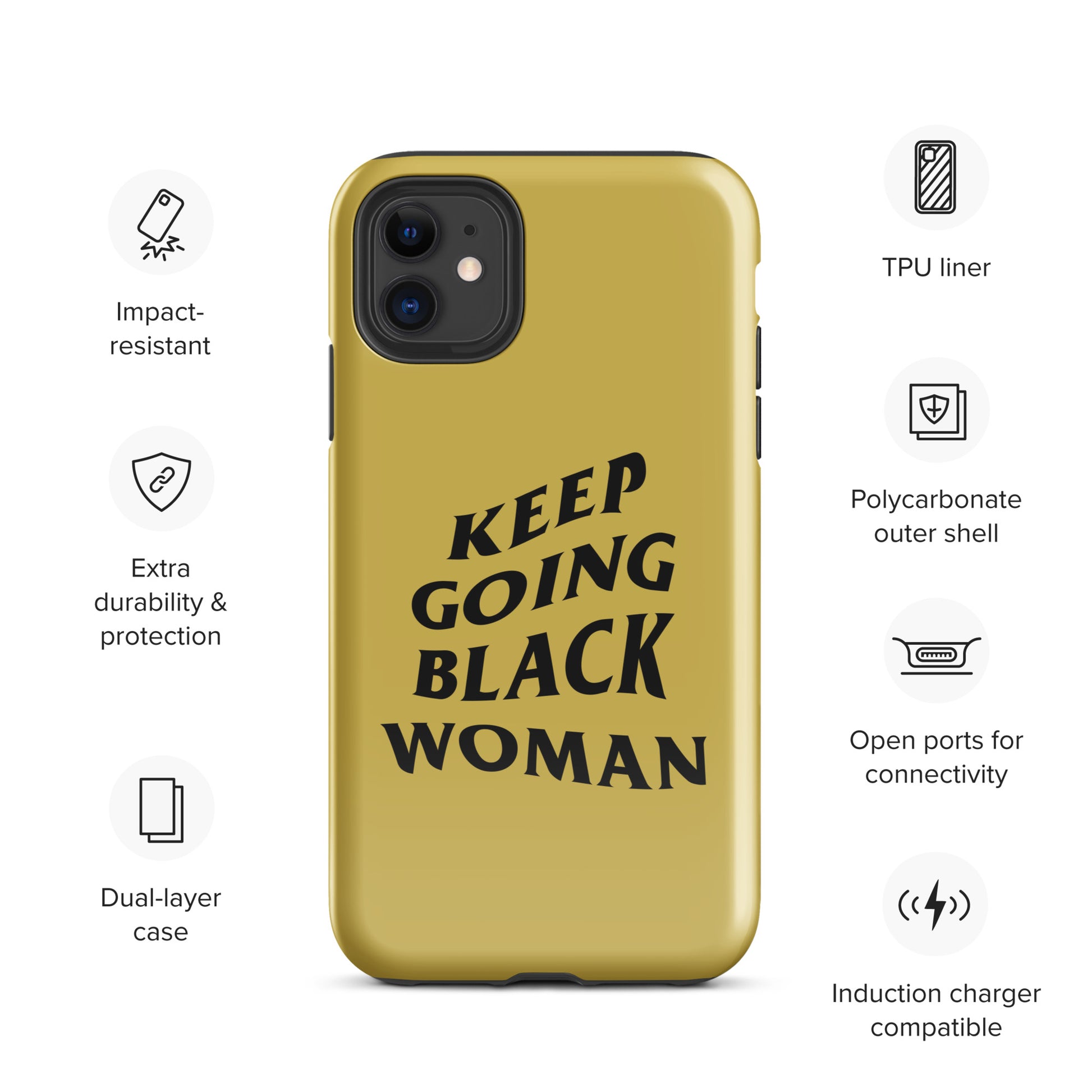 Keep Going Black Woman Tough Case for iPhone® (Gold)