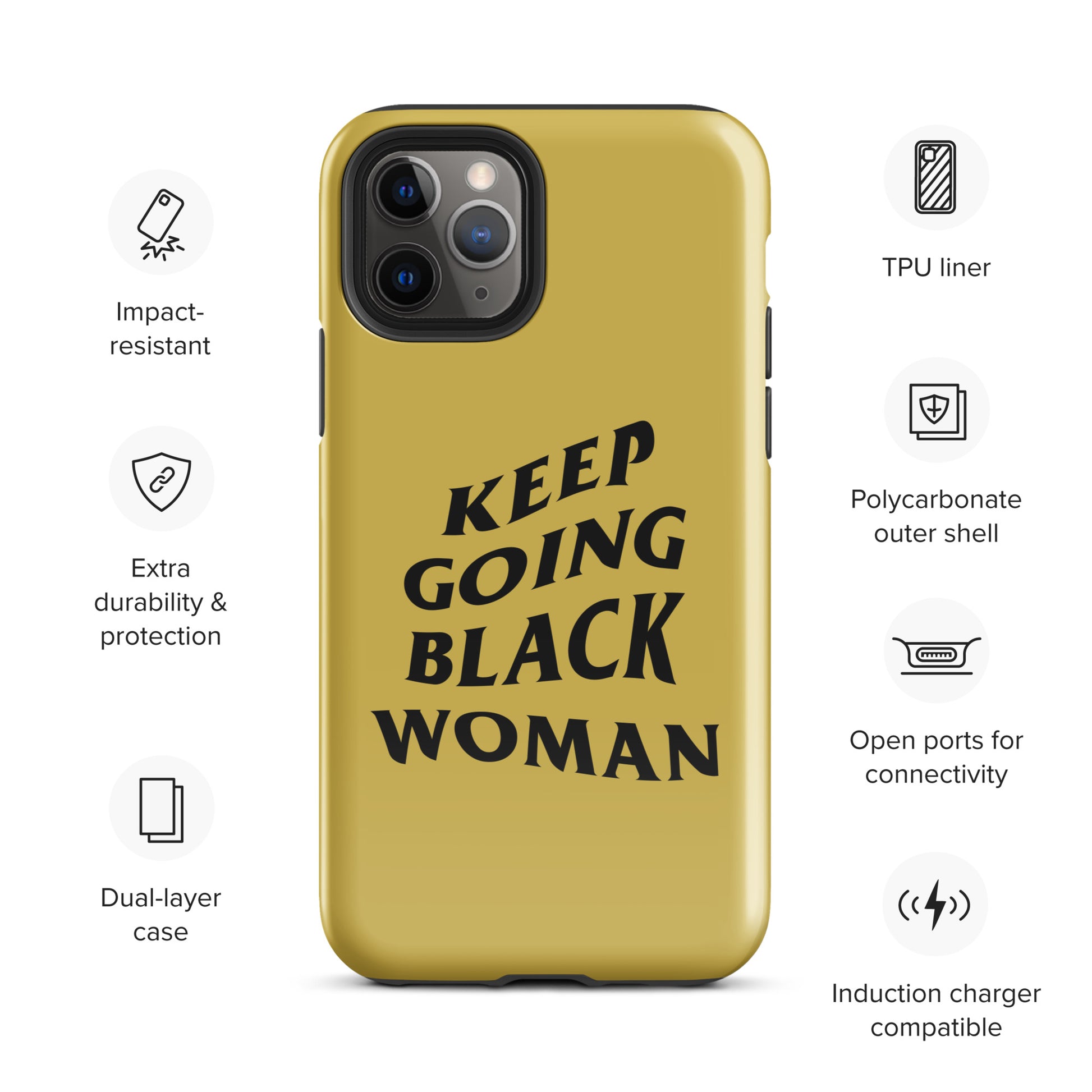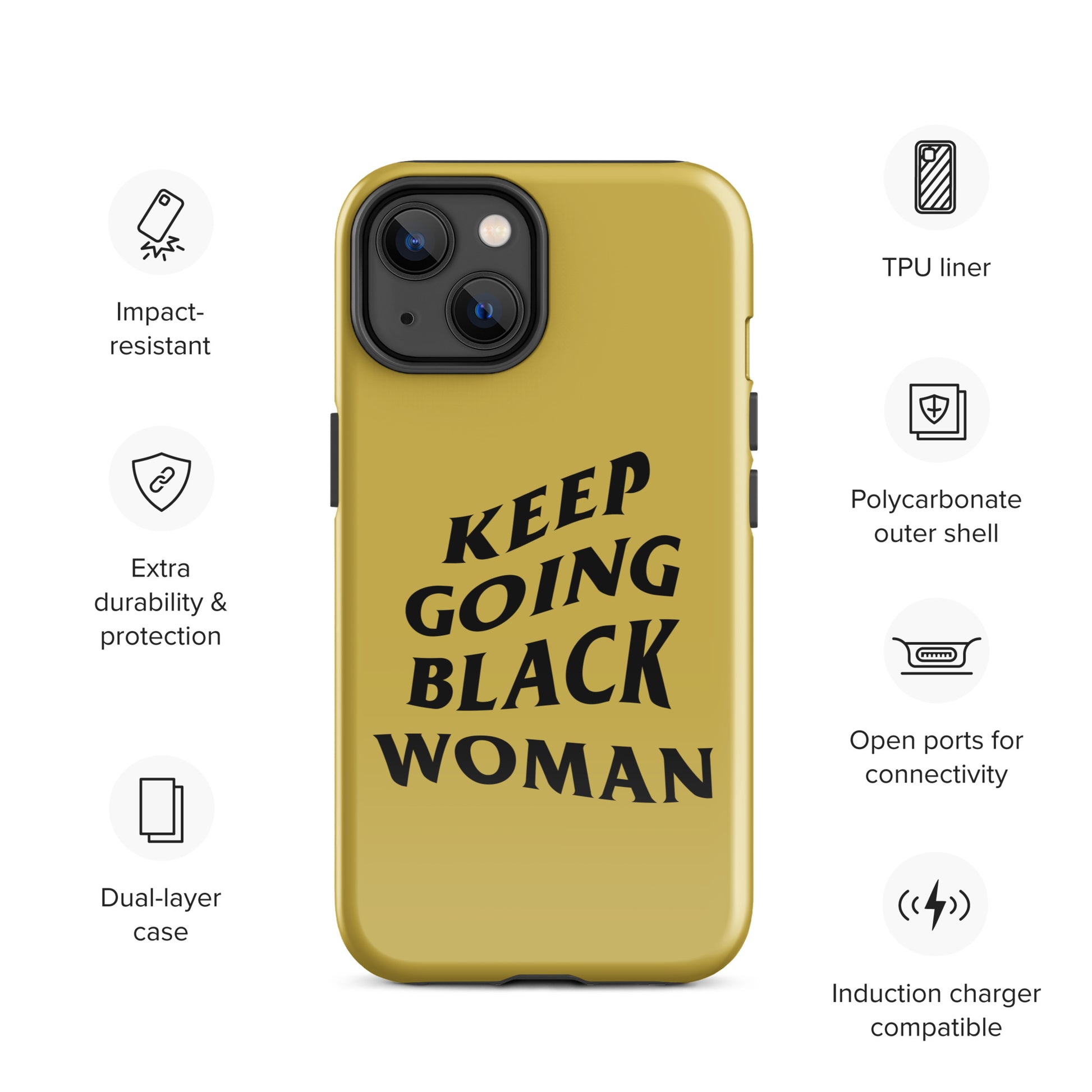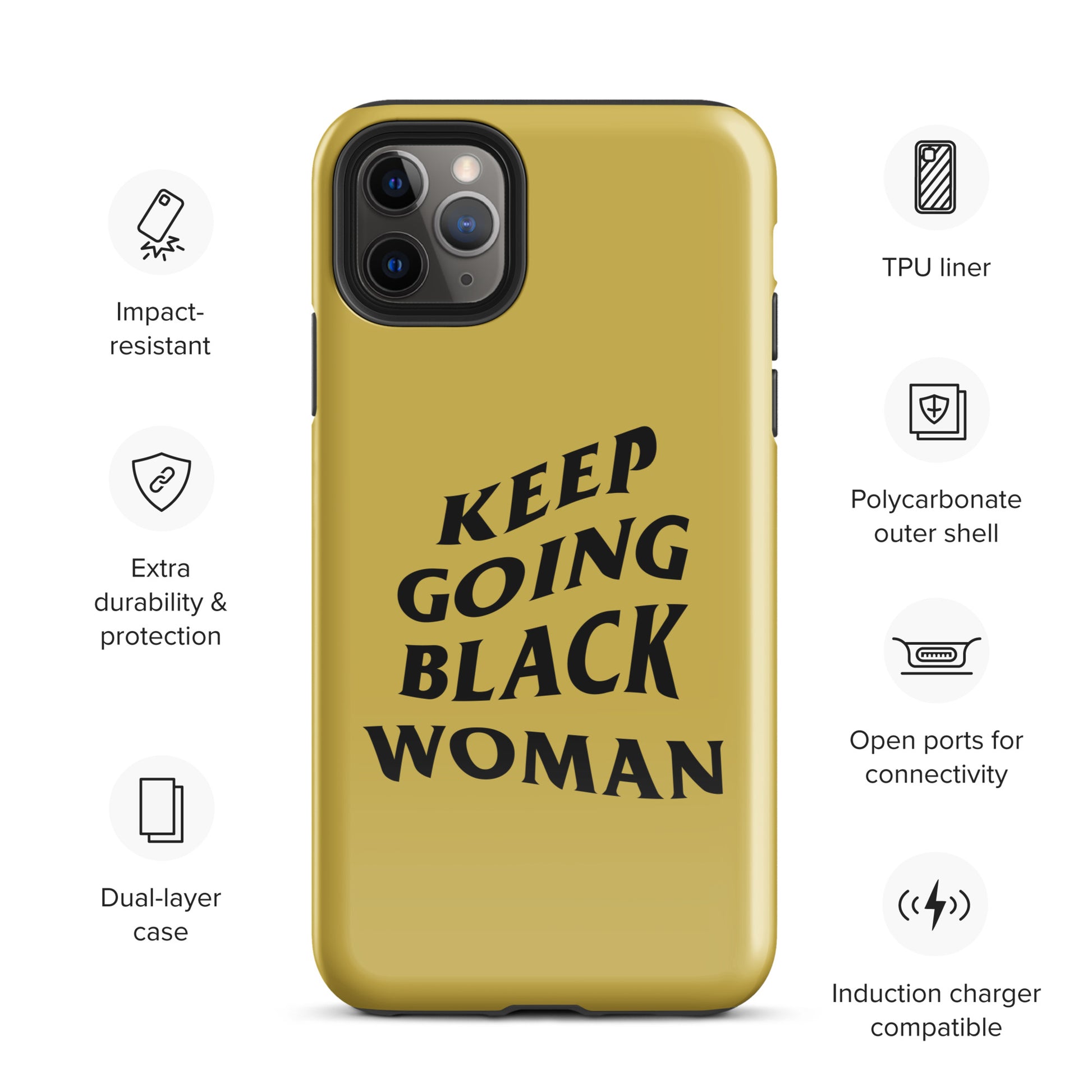 Keep Going Black Woman Tough Case for iPhone® (Gold)