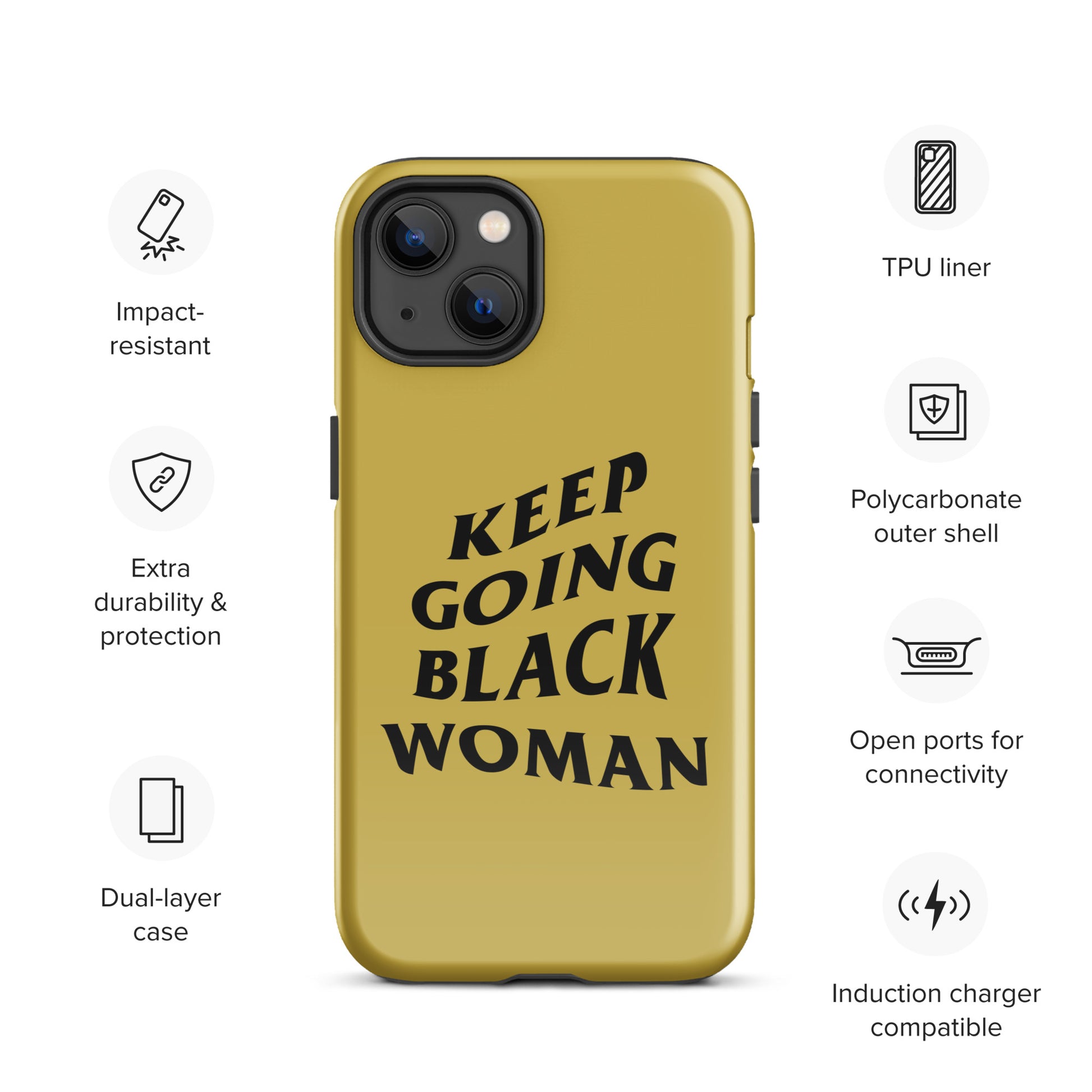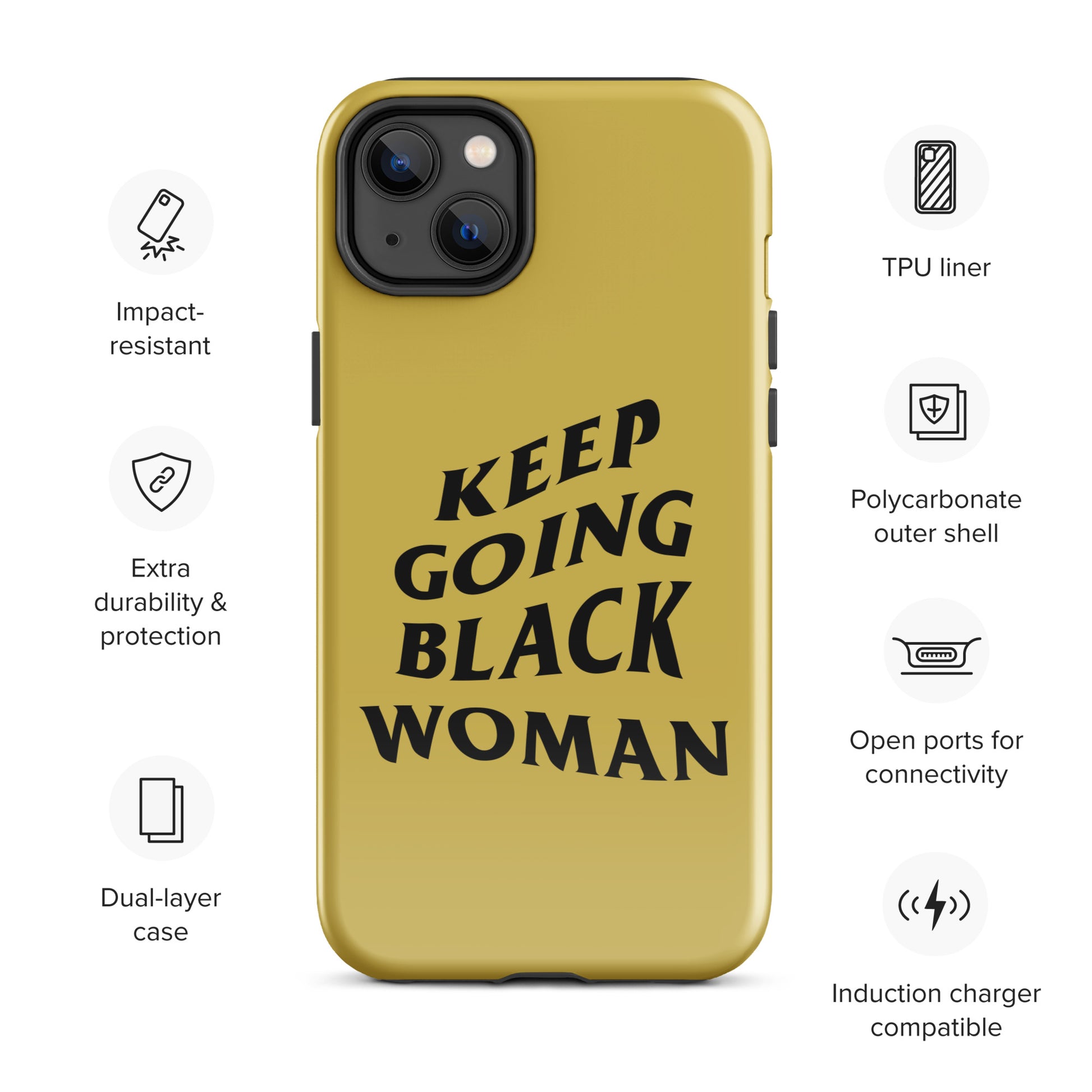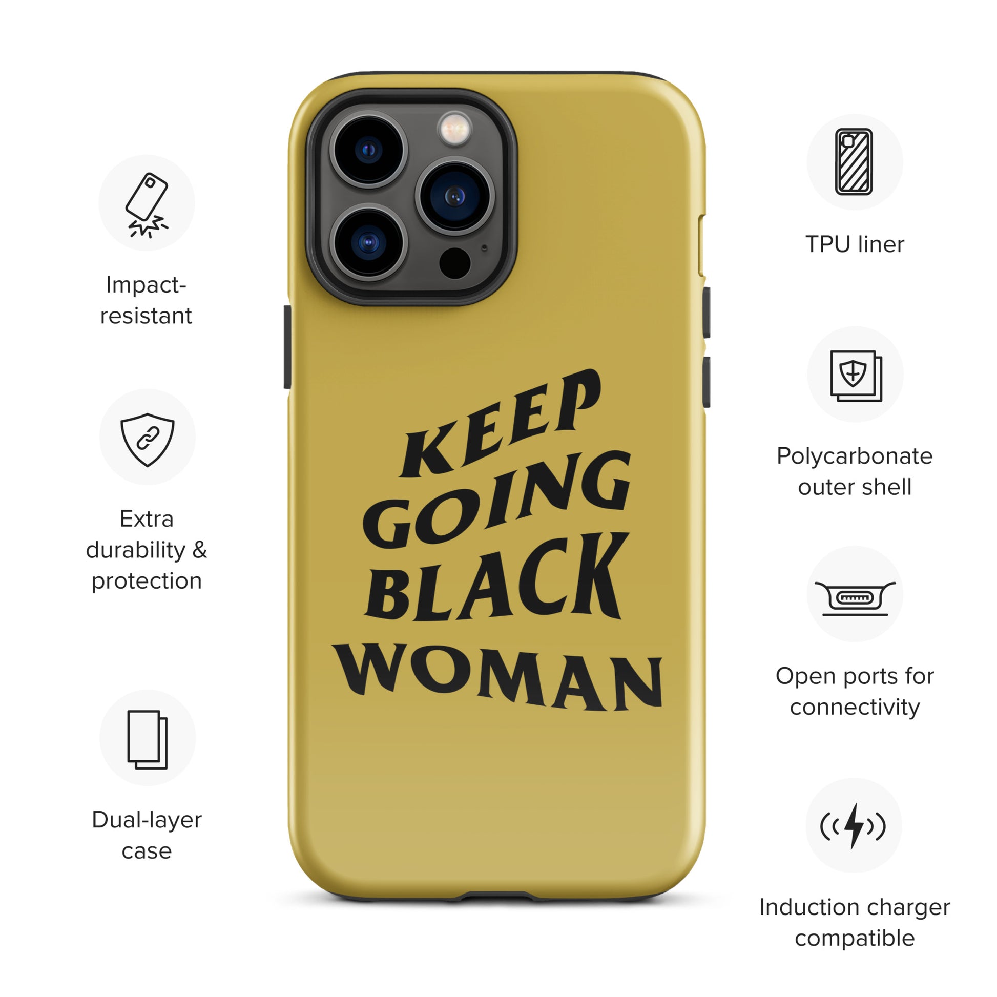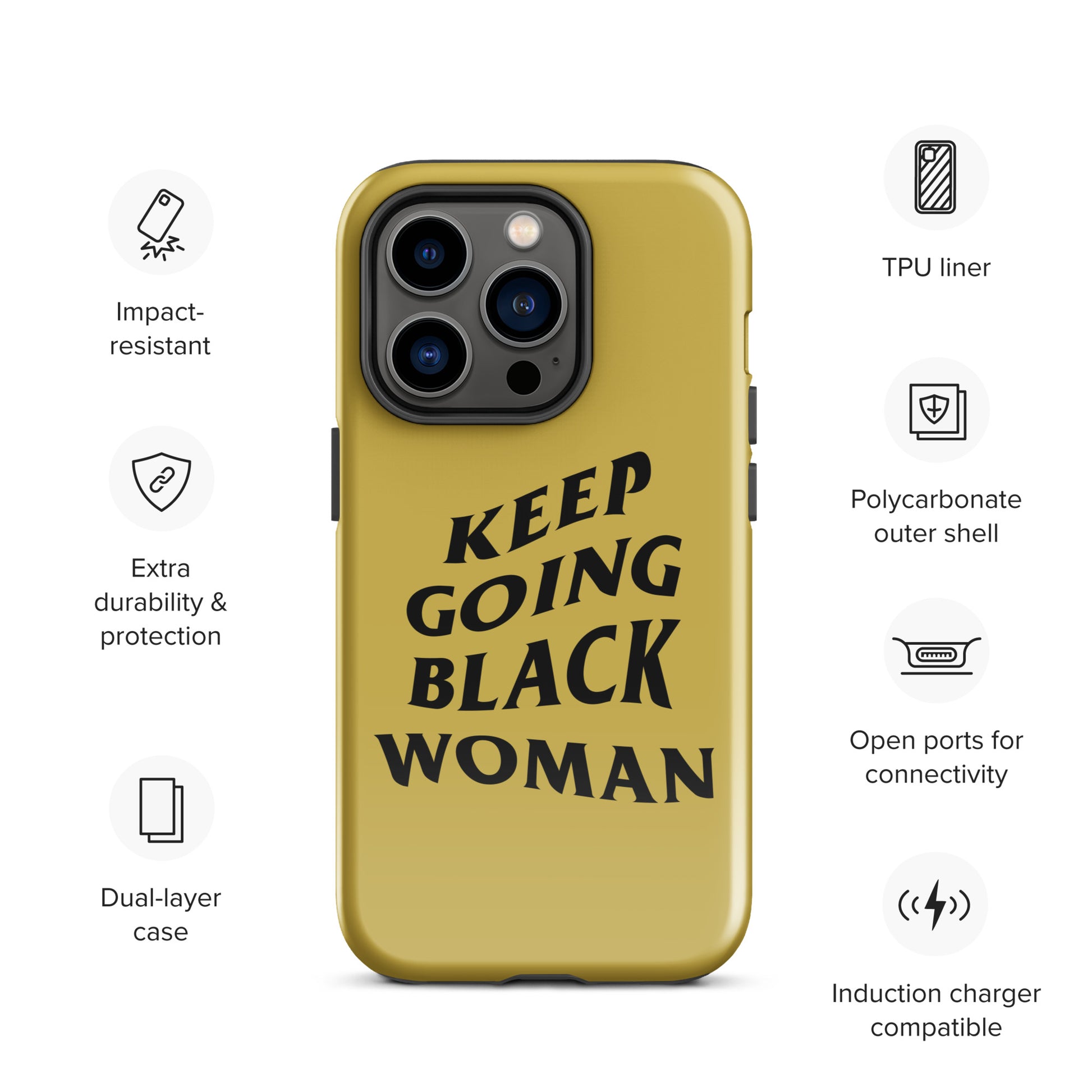 Keep Going Black Woman Tough Case for iPhone® (Gold)